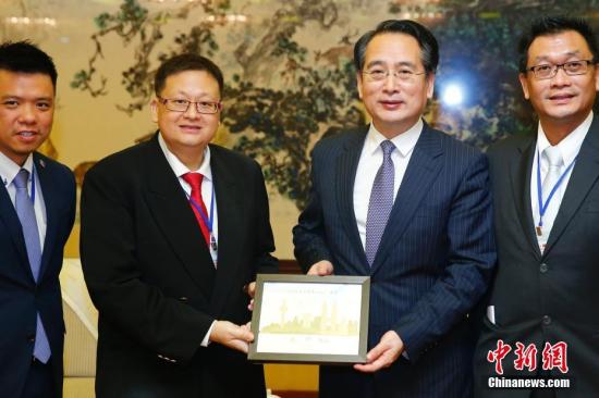 中新社北京4月3日电(孙翔)4月3日,中国海外交流协会副会长谭天星会见马来西亚青年总团联合访华团。