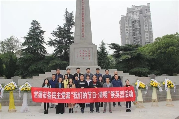 4月4日,民盟、民建、民进、农工党、致公党、九三学社6个民主党派市委会联合举办“我们的节日·清明”祭奠抗战英烈活动。在常德会战阵亡将士纪念公墓前,大家神情凝重,列队肃立,面对纪念碑集体鞠躬,向抗战英烈敬献了花篮。在各民主党派市委会专职副主委上前整理缎带之后,大家手持鲜花绕行依次瞻仰纪念碑,表达对英烈的无比缅怀之情。