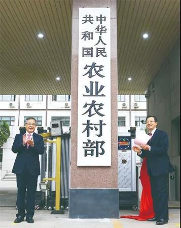 4月3日,中华人民共和国农业农村部正式揭牌。中共中央政治局委员、国务院副总理胡春华出席揭牌仪式。