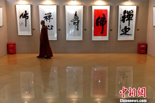 图为会议期间举行“东方法韵?慈心慧语”书法专题展。吕明摄