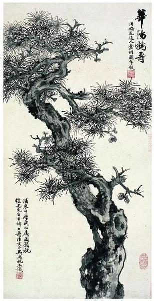 画松,可得心灵之正气。松方位属中,五行属土,脏属脾,腑属胃,经?;芍耍傻谩昂D砂俅ā敝亟?,多福多寿。