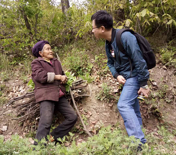 4月9日,调研组成员、陕西省社会保障局西安市养老保险经办处科长赵军在方家沟村走访贫困户。