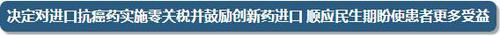 1、 从2018年5月1日起,将包括抗癌药在内的所有普通药品、具有抗癌作用的生物碱类药品及有实际进口的中成药进口关税降至零,使我国实际进口的全部抗癌药实现零关税。较大幅度降低抗癌药生产、进口环节增值税税负。