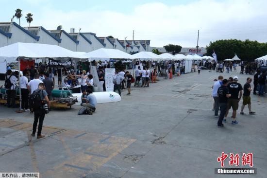 资料图:美国加利福尼亚州,全球逾20个开发超级高铁列车车厢的团队齐聚,在SpaceX的测试轨道上对它们的设备进行测试。