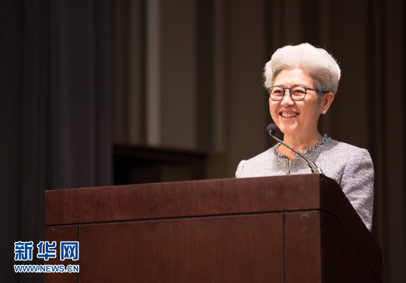 4月14日,中国全国人大外事委员会副主任委员傅莹在美国宾夕法尼亚州大学举行的宾大沃顿中美峰会上发表演讲。新华网发