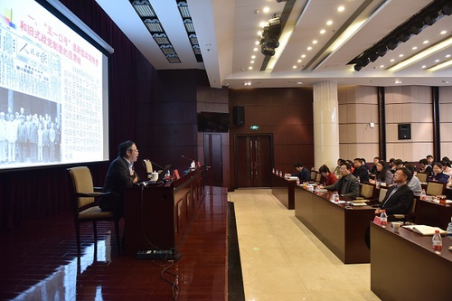 孙信教授以“‘五一口号’是新型政党制度和旧式政党制度的泾渭线”开篇,结合历史现实,运用大量实例,深入分析了中国多党制、一党制和国共合作失败的原因,详细介绍了中国共产党领导的多党合作和政治协商制度的产生、发展、特点和优势,使大家对中国新型政党制度有了更深刻的认识,更坚定了走中国特色社会主义政治发展道路的决心和信心。