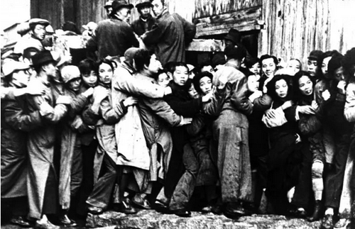 国民党沦陷区的民众排队抢购粮食