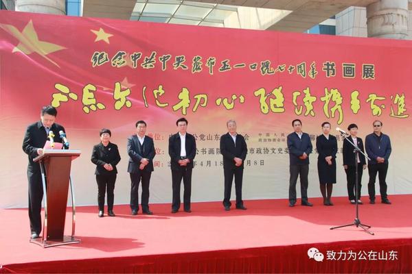 赵家军指出,举办这次书画展,旨在以书画的形式纪念中共中央发布“五一口号”70周年,在重温历史中铭记合作初心,在弘扬传统中深化政治共识,不断增强坚持中国特色社会主义道路自信、理论自信、制度自信、文化自信,夯实新时代多党合作共同思想政治基础,确保多党合作事业薪火相传。他强调,要以纪念“五一口号”发布70周年为契机,坚持以习近平新时代中国特色社会主义思想为指导,发挥致公党“侨”“?!碧厣攀?,聚焦统筹推进“五位一体”总体布局和协调推进“四个全面”战略布局,聚焦贯彻落实新发展理念,认真履行参政党职能,为打赢“三大攻坚战”及服务新旧动能转换重大工程汇智聚力,为决胜全面建成小康社会、夺取新时代中国特色社会主义伟大胜利、实现中华民族伟大复兴的中国梦作出新的贡献。