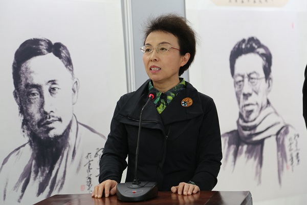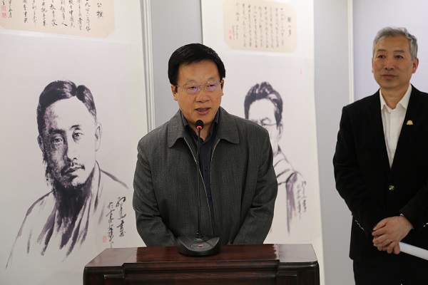 张平副主席代表民盟中央感谢中国传媒大学对活动的支持,表示站在这些民盟先贤的肖像面前倍感敬意,深为自豪,并宣布民盟先贤巡回展正式启动。