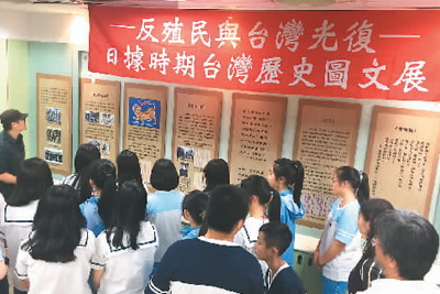 本报台北4月10日电(记者吴亚明、孙立极)“反殖民与台湾光复——日据时期台湾历史图文展”10日下午在台北市的永吉中学开幕。展览以珍贵丰富的史料图文,展示了1895年至1945年日本殖民统治的50年间台湾人民自武装抗日至寻找祖国、参加抗日战争投身民族统一运动的历程。