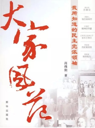《大家风范——我所知道的民主党派领袖》是2009年新华出版社出版的图书,作者肖伟俐为新华社高级记者。本书真实记录了黄炎培、周建人、许德珩、庄希泉、周谷城、楚图南等6位著名民主人士的家风、家事和奋斗故事。他们都曾领一时之风骚。都曾对近代中国历史产生过巨大的影响。他们求学、求生、求变的一生,始终与国家的兴亡、民族的强盛、社会的进步休戚与共,丝丝紧扣。他们在自由和民主的道路上呐喊、探索、拓展,最终汇聚在共和国的旗帜下,完成了自己的伟业。他们早已成为一面旗帜,昭示着后人前行的方向。