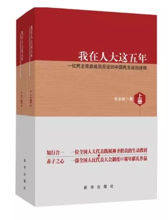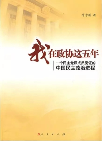 2008年5月,由朱永新所著的《我在政协这五年:一个民主党派成员见证的中国民主政治进程》一书由人民出版社出版发行。该书展示了作者作为第十届全国政协常委,在2003年至2007年的五年中的履职心路,不仅表达了一个民主党派成员参政议政的热情,还通过参政议政的个人历史,打开了一扇中国共产党领导的多党合作和政治协商制度的窗户,见证了中国民主政治进程。(周福志)