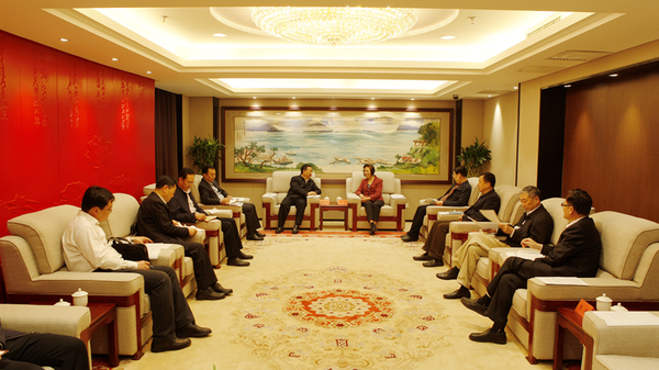 4月20日上午,全国政协副主席、台盟中央主席苏辉在台盟中央机关会见了来访的中共甘肃省委副书记、省长唐仁健一行并进行座谈。