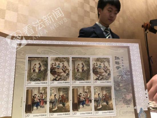 现场,红学家也从自己的角度为广大球迷介绍了此次邮票中涉及到的人物以及他们的特点。而最吸引广大集邮迷的就是现场展示的红楼梦系列邮票中,不仅有此次发行的丰富邮品,还有前两套红楼梦邮票,以及一些红楼题材邮票,引发了集邮迷排队购买。