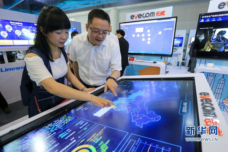23日,长威科技工作人员向市民介绍大数据平台应用。新华网 肖和勇 摄