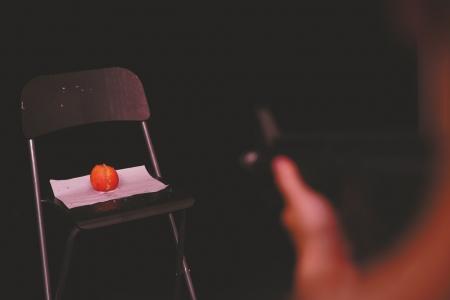 水弹枪的威力进行实物测试,一米外的苹果被打得稀烂。