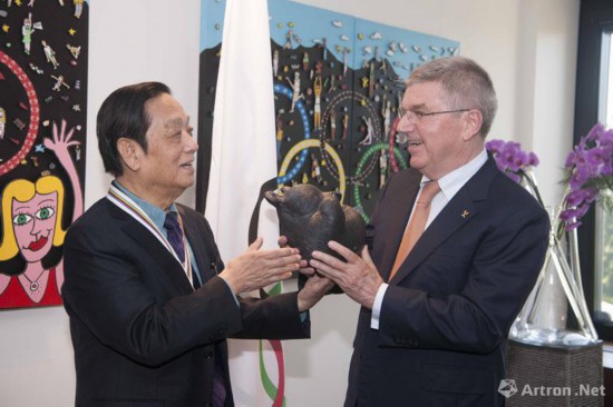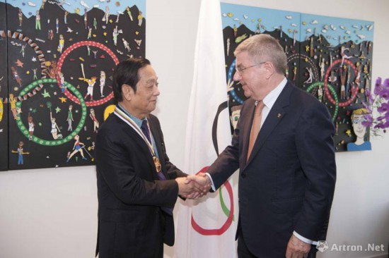 韩美林与国际奥委会主席巴赫、国际奥委会副主席于再清