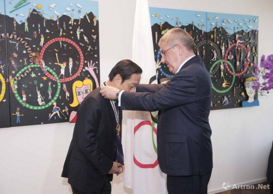 国际奥委会主席托马斯·巴赫给中国艺术家韩美林颁发 “顾拜旦奖”