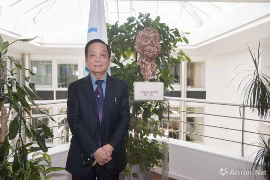 2015年10月14日,UNESCO总干事博科娃为韩美林颁发“和平艺术家“证书