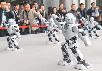 图为智能机器人在进行舞蹈表演。新华社记者 李 博摄