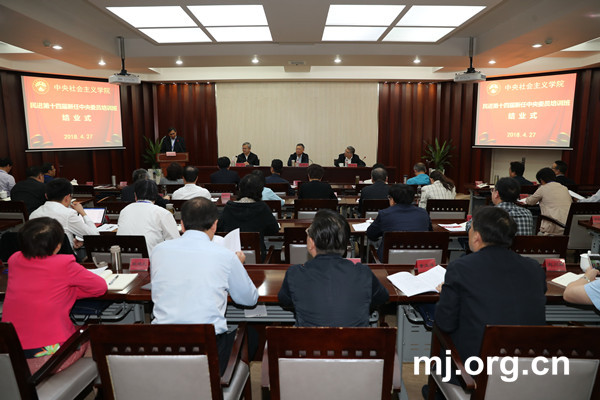 4月27日下午,民进第十四届新任中央委员培训班在中央社会主义学院举行结业式