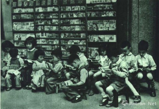 1951年上海连环画出版业联合书店便利店前儿童(《人民画报》)