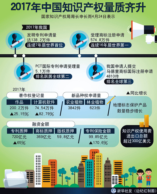 2017年4月,全球著名的科技博客TechCrunch刊登了美国知识产权法协会前主席韦恩·索邦的文章《中国意外成为知识产权强国》称,中国现在可能还不是知识产权保护和执法的全球领导者,但正朝着这个角色迅速逼近。(李贞 时宏强 王若怡)