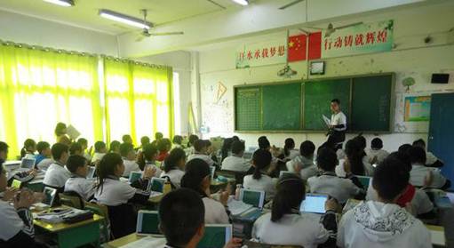 “每个学生课桌上摆放的平板电脑,是一种类似于读书郎的移动学习终端,每个学生的名字和编号都与老师的多媒体教学平台相连,学生只要点开屏幕,就能看到这节课的学习内容”。宜宾市六中老师通过课件共享系统在八年级九班上了一节趣味高效的数学课。来自屏山县大乘中学的青年老师肖瑶在宜宾市六中观摩课堂教学时感受到现代科技手段教学的魅力。