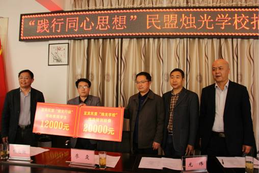 屏山县是国家级扶贫开发重点县、乌蒙片区连片扶贫开发重点县,教育基础较差,贫困程度深。民盟宜宾市委开展“烛光行动”以来,盟市委和广大盟员积极开展爱心帮扶活动,发挥优势,奉献光热,为屏山大乘中学、和平街小学捐资经费6万元,盟员结对帮扶贫困学生20人,为他们捐资助学金2.4万元。