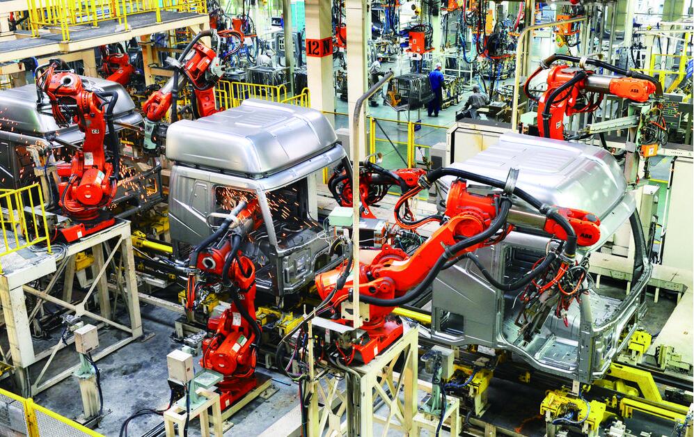 一汽解放公司焊接生产线,高科技机械手程序化焊接,提高了生产效率。 贾春文 摄