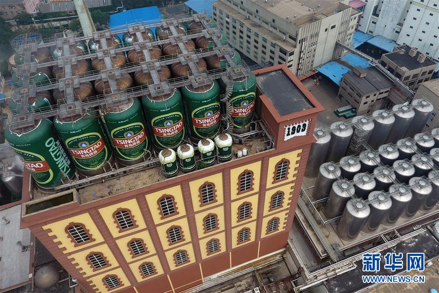 这是无人机拍摄的青岛啤酒厂(2017年8月10日摄)。新华社记者 朱峥 摄