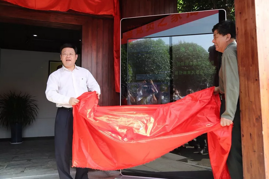 民革湖南省委会原主委刘晓与民革中央组织部部长叶赞平为团结报阅报屏揭幕