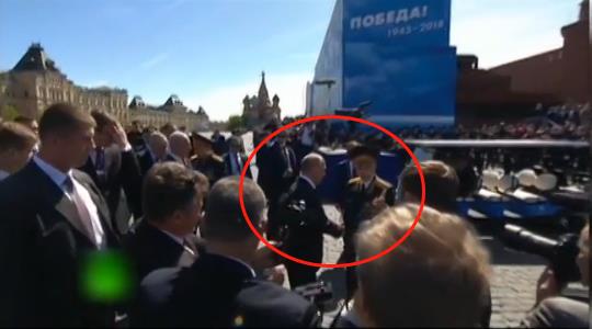 发现这一幕的普京,立刻转身向这位二战英雄迎了上去,与他握手、交谈。
