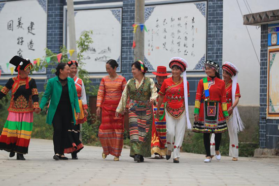 夏日已至,大理州洱源县三营镇共和村委会郑家庄的朵朵鲜花绽放甚艳。身着不同民族服装的村民,正在民族文化广场上载歌载舞,这是郑家庄村民们的日常。