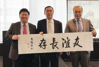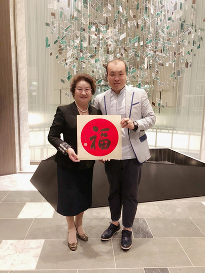 为了更好地体现文化交流的内涵,作为中宇力度文化有限公司(以下简称中宇力度)董事长邢凤亮在现场赠送华人楷模林竹盛子(Q.BIT研究所株式会长)由天津美术学院美术馆馆长、中国美术家协会会员、中国书法家协会会员霍春阳书写的“?!弊质榉ê汀拔煨绱蠹惫纺昙湍畋8眉湍畋侵泄嗣窀锩虏┪锕菝朗跏榉ù醋髦行氖榉ㄗ涛被岣敝魅挝崩詈楹L庑吹摹笆绱蠹弊只⒔岷狭司暗抡蛭南橐ぬ沾梢帐?,由擅长釉下彩绘的陶瓷工艺品大师文祥手工特制。