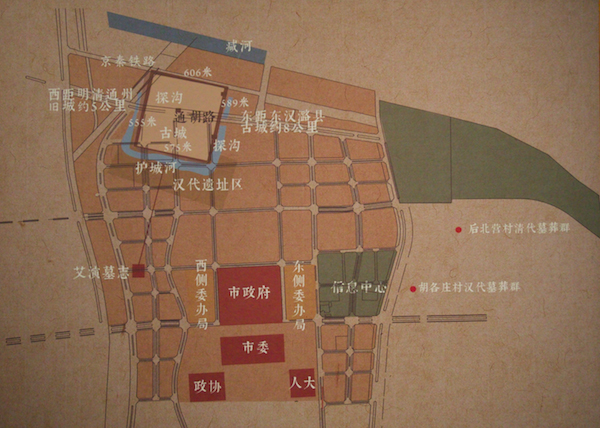 2016年开始的考古挖掘也发现了路县故城遗址。因为配合北京副中心的建设而进行了大规??脊欧⒕?,发现了路县故城,这一工作被评为当年的十大考古发现,这部分展出副中心考古出土的汉代文物。第二小节展示晋代至唐代的通州。这部分实际上是汉代的延续,通州作为中原政权边陲重镇幽州的辅县,与幽州城命运紧密相连。展品不多,主要是晋代墓葬和唐代墓葬文物。