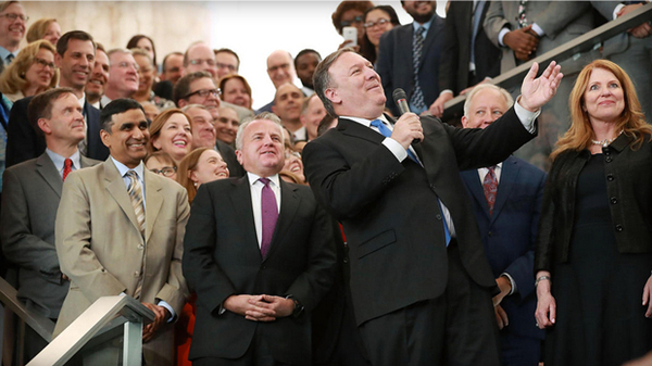 讲话中,蓬佩奥赞扬了美国在全球事务中的“本质正确”,敦促士气低落的美国外交官们在推动和执行特朗普外交政策时采取坚定、积极的行动。