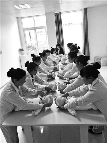 家政服务人员正在进行婴儿抚触的培训摄影/本报记者 解丽