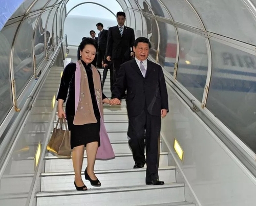 △2013年3月26日,习近平抵达南非德班时和彭丽媛牵手走下飞机。