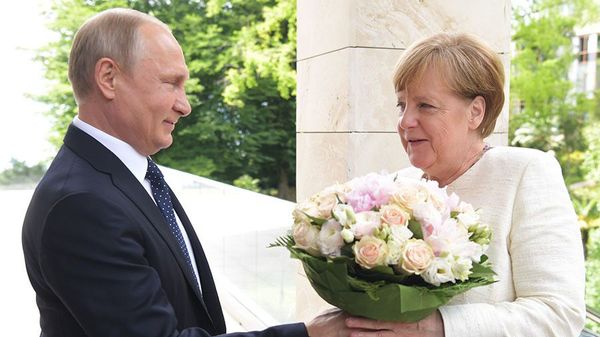 【环球网综合报道】“俄罗斯总统普京18日会见德国总理默克尔时,似乎发起了魅力攻势”。据《今日俄罗斯》报道,普京当天手捧一大束粉白鲜花,面带微笑在索契私人官邸的入口处迎接访俄的默克尔。