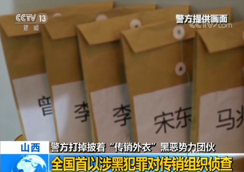 央视网消息:近日,山西临汾警方在打击非法传销案件中,发现一些传统聚集式传销组织 已经从经济犯罪演变成暴力集团犯罪,成为黑恶势力犯罪组织。临汾警方首次以涉嫌黑恶势力团伙犯罪对传销组织进行立案侦查,刑拘了上百人。