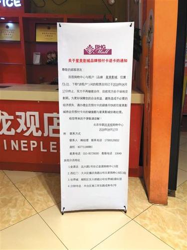 回龙观星美国际影城不再续租,以及关于预付卡退卡的通知。