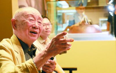 此次展览作品以紫砂壶体为载体,借助紫砂镌刻工艺半绘半刻,是黄永玉在创作媒材上又一次新的尝试。作为书画界有名的“90后”老顽童,在展览开幕式上,黄永玉虽然耳朵有点背,但依然“金句”频出,话里透着天真幽默:“一个老头闲在家里没事儿干,画了一些壶。用时髦的话来讲,就是行为艺术吧!”