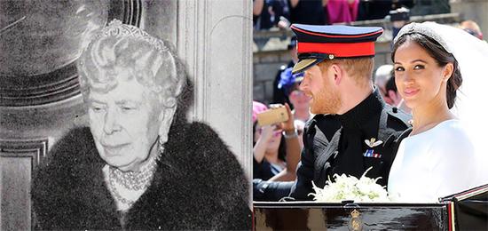 梅根王妃佩戴的冠冕来自英国女王伊丽莎白二世,原本属于伊丽莎白二世的奶奶玛丽王后
