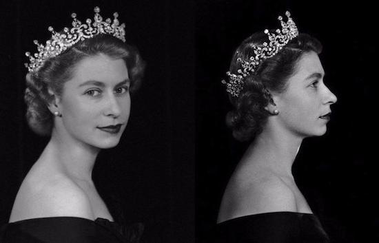 虽然经过带带相传,流传到凯特王妃这一代的冠冕并不在少数,但有个别意义特殊的冠冕是伊丽莎白女王的心头好,流传到她手里之后至今还未出借给任何王室成员。其中不得不提的就是传说中的Girls of Great Britain and Ireland 冠冕。1913年这顶冠冕从维多利亚女王处传到玛丽王后手中,玛丽往后随后让王室珠宝商Garrads委托E.Wolff &Co。修改,并且添上了自己在周年纪念时收到的由丈夫乔治五世赠与的宝石。后来玛丽王后将其送给伊丽莎白作为结婚礼物,也成为伊丽莎白二世最喜欢的王冠之一——印在英镑上的女王肖像,就佩戴了这顶传奇的冠冕。