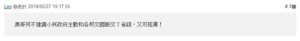 也有网友揶揄他,“何不建议小英主动和各‘邦交国’‘断交’?省钱,又可孤独!”