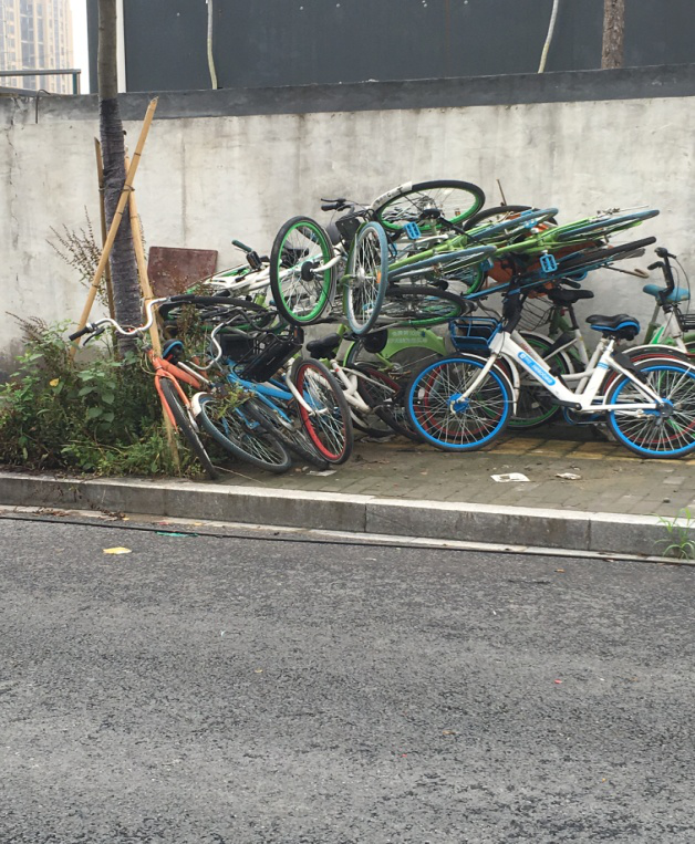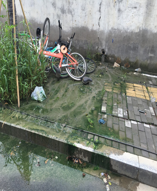 3、 保亭村施工场地垃圾分类情况——随地垃圾较多,共享单车凌乱