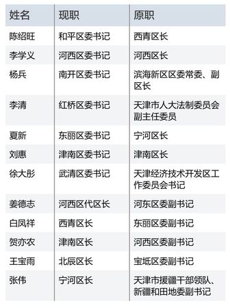 长安街知事(微信ID:Capitalnews)发现,一个月来,天津已密集调整10个区的12位党政一把手。
