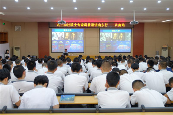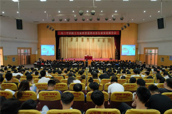 九三学社山东省委副巡视员王龙然、九三学社泰安市委主委刘君,来自九三学社及其他各民主党派的成员,泰山学院、山东服装职业学院、历城二中的师生等共计1300余人现场聆听了讲座。(陈建华)
