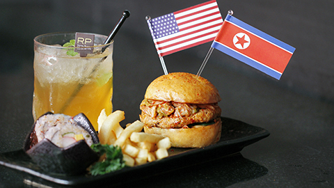 这款“金特会”汉堡,则把嫩鸡肉饼、炸薯条、朝鲜泡菜和紫菜包饭混搭在一起。